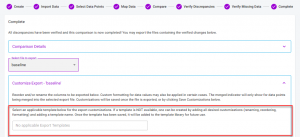 This new functionality is also available on the Export file in Step 8.  If an applicable template exists matching the  data points, it can be selected and the customization will be automatically applied.  However, if no applicable template exists, a new template can be created by selecting the desired customization, adding a template name, and then saving.