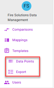 All templates are created and saved at the company level and are not shareable across companies or organizations.  Saved templates can be found in the Template Library in the company menu.   Please note that the template name is the only aspect of the template that can be edited.  However, both the data point and the export template can be deleted.